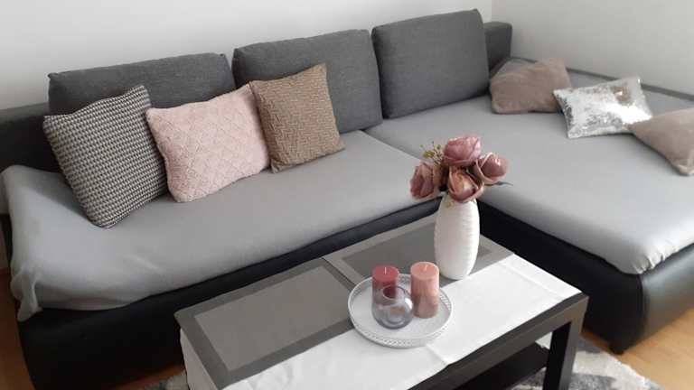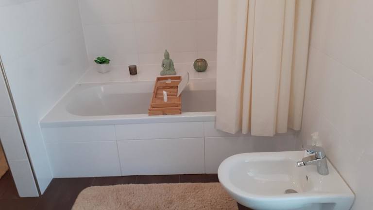 Die Ferienwohnung verfügt über ein Schlafzimmer, eine Küchenzeile mit Kühlschrank und Herdplatte, einen Flachbild-TV sowie einen Sitzbereich. Ein Badezimmer mit Bidet ist ebenfalls vorhanden. Handtücher und Bettwäsche werden bereitgestellt.