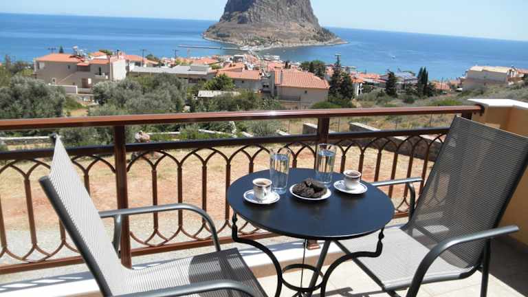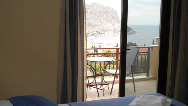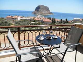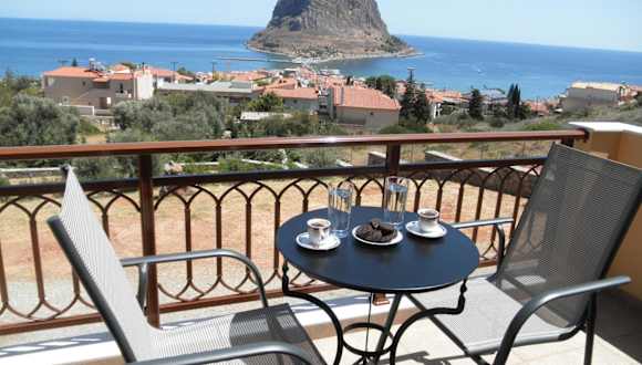 Die klimatisierten Zimmer in der Villa Cazala sind komfortabel und bieten einen Balkon, von dem aus Sie die Aussicht auf die Festung von Monemvasia und das Myrtoische Meer genießen können. Die Zimmer verfügen über einen Sitzbereich, einen Flachbild-Sat-TV, einen Kühlschrank und einen Esstisch. Im eigenen Bad finden Sie eine Dusche und einen Haartrockner.