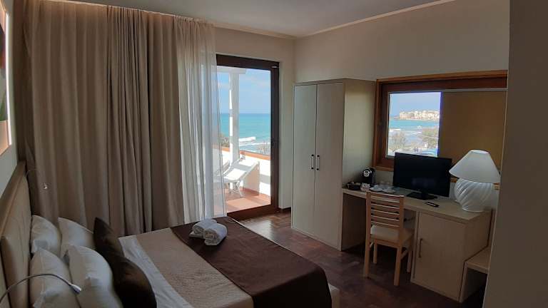Die Zimmer in der Villa Cerniglia Plus sind klassisch eingerichtet und verfügen über eine Klimaanlage, kostenfreies WLAN und einen TV. Jedes Zimmer hat ein eigenes Badezimmer mit einem Haartrockner. Die Zimmer bieten auch einen wunderschönen Meerblick, der Ihnen ein Gefühl von Ruhe und Entspannung vermittelt.