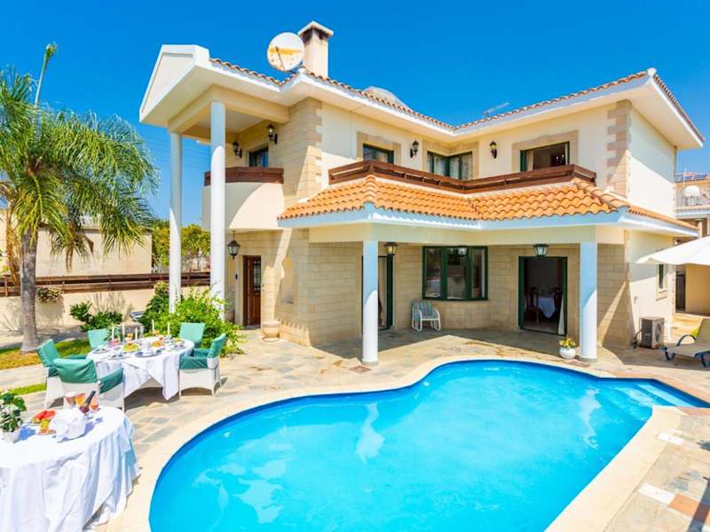 Die Villa Charianna bietet geräumige Unterkünfte mit allen Annehmlichkeiten, die Sie für einen komfortablen Aufenthalt benötigen. Die Villa verfügt über einen eigenen Pool, in dem Sie sich an heißen Tagen erfrischen können. Innen bietet die Villa einen DVD-Player, eine voll ausgestattete Küche mit Kühlschrank, Backofen und Geschirrspüler, ein gemütliches Wohnzimmer und einen Essbereich. Mit insgesamt 4 Schlafzimmern und 3 Badezimmern ist genügend Platz für die ganze Familie oder eine Gruppe von Freunden vorhanden. Kostenloses WLAN und Klimaanlage sorgen für zusätzlichen Komfort.