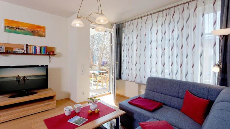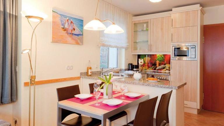 Die Ferienwohnung umfasst 1 Schlafzimmer und ein Wohnzimmer. Eine voll ausgestattete Küchenzeile ist vorhanden, die mit Kühlschrank und Kaffeemaschine ausgestattet ist. Ein Badezimmer mit Badewanne und Haartrockner steht ebenfalls zur Verfügung. Handtücher und Bettwäsche werden angeboten, jedoch nicht im Zimmerpreis inbegriffen.