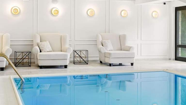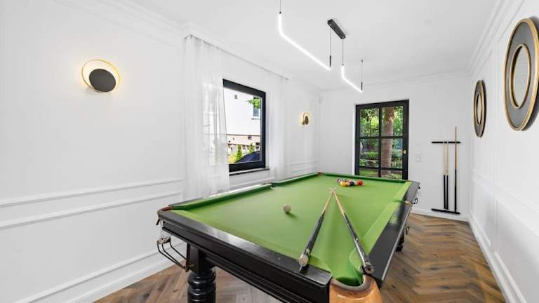 Die Villa bietet den Gästen die Möglichkeit zur Nutzung eines Innenpools sowie einer Sauna und eines Whirlpools. Zusätzlich stehen Freizeitmöglichkeiten durch den Garten zur Verfügung.