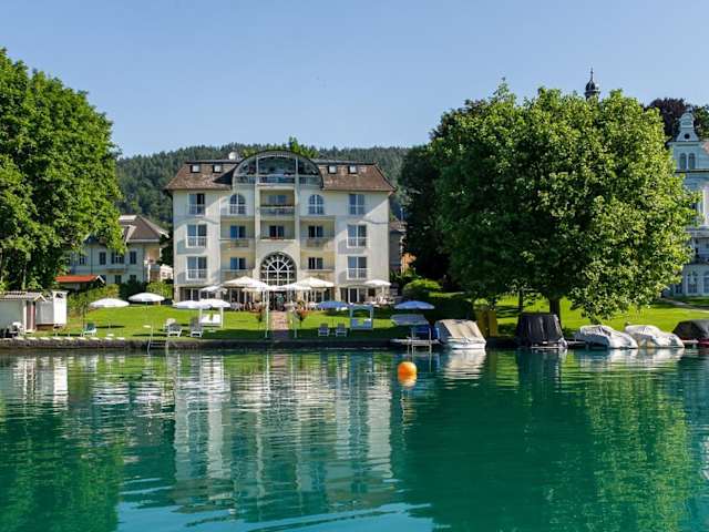 Die Villa Christina ist ein familiengeführtes Hotel direkt am Ufer des Wörthersees und nur wenige Gehminuten vom Zentrum von Pörtschach entfernt. Hier können Sie einen entspannten Urlaub mit eigenem Privatstrand, einer Terrasse mit Seeblick und komfortablen Zimmern genießen. Starten Sie den Tag mit einem leckeren Frühstück und gönnen Sie sich am Nachmittag einen Snack mit Kaffee und Kuchen. Die Umgebung bietet eine Vielzahl an Freizeitaktivitäten wie Golf und Bootsfahrten.