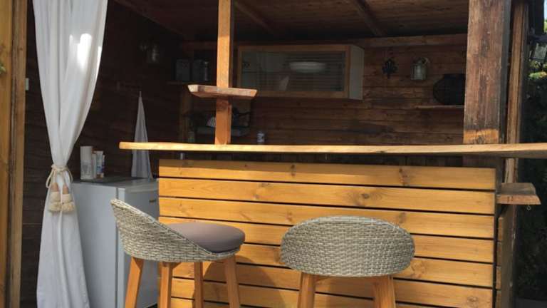 Die Villa bietet Platz für bis zu sechs Gäste mit drei Schlafzimmern, zwei Badezimmern mit Dusche und Badewanne, einem Wohnzimmer mit Sitz- und Essbereich sowie einer voll ausgestatteten Küche mit Kühlschrank, Geschirrspüler und Ofen. Handtücher und Bettwäsche werden bereitgestellt.
