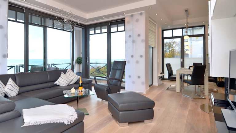 Die Unterkunft Villa Claire - Meerblicksuite 'Sunrise Queen' befindet sich im Ostseebad Sellin, nur 200 m vom Hundestrand entfernt. Die Umgebung bietet Zugang zu Fahrradfahrmöglichkeiten. Weitere Sehenswürdigkeiten in der Nähe sind die Naturbühne Ralswiek (28 km) und das Nationalpark-Zentrum Königsstuhl (38 km).