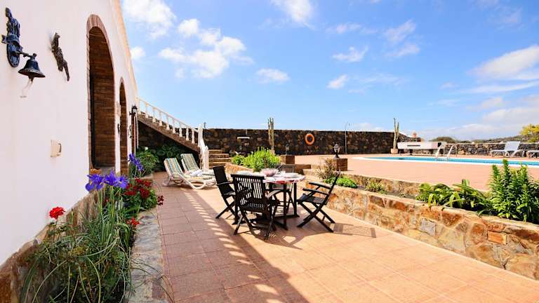 Die Villa Clara 2 bietet eine großzügige Terrasse mit einem gemeinsamen Außenpool. Hier können Sie sich entspannen, schwimmen und die Sonne genießen. Die Umgebung lädt auch zu Aktivitäten wie Wandern und Radfahren ein, um die schöne Landschaft von Lanzarote zu erkunden. Der Strand von Puerto del Carmen, nur 20 Autominuten entfernt, bietet zudem Wassersportmöglichkeiten wie Tauchen und Schnorcheln.