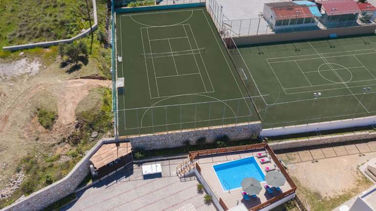 Die Unterkunft verfügt über ein privates Tennisfeld und ein Fußballfeld, die für sportliche Aktivitäten genutzt werden können.