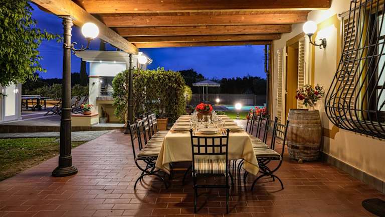 Verbringen Sie Ihren Urlaub in der Villa Colombai im charmanten Dorf Orentano, nur 18 km von Lucca entfernt. Dieses historische Gebäude, das einst eine Schule war, bietet Ihnen einen großen Garten mit einem Salzwasserpool, einem Spielplatz und einem Grill. Die Villa ist im klassischen toskanischen Stil eingerichtet und verfügt über komfortable Zimmer mit Terrakottaböden und Holzbalkendecken. Nutzen Sie die Außeneinrichtungen wie die Dusche, die Tischtennisplatte und das Fußballfeld. Genießen Sie auf der möblierten Terrasse köstliche Mahlzeiten oder buchen Sie einen persönlichen Koch. In der Umgebung finden Sie Geschäfte, Cafés und traditionelle Bäckereien.