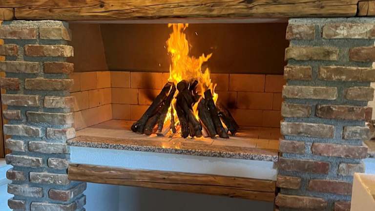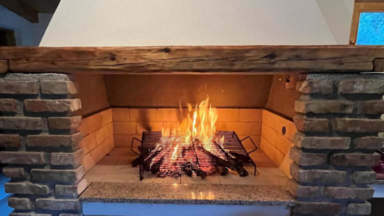 Die Villa bietet eine voll ausgestattete Küche, einschließlich Kühlschrank und Geschirrspüler. Grillmöglichkeiten sind ebenfalls vorhanden.