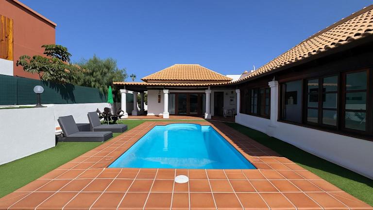 Die Villa Corralejo Beach in Corralejo ist eine ideale Unterkunft für Ihren Urlaub. Mit einem Außenpool, einem Garten und kostenfreiem WLAN bietet die Villa alles, was Sie für einen entspannten Aufenthalt benötigen. Genießen Sie den Stadtblick von der Terrasse und nutzen Sie die kostenfreien Privatparkplätze. Die Villa verfügt über klimatisierte Zimmer, eine voll ausgestattete Küche und mehrere Badezimmer. Handtücher und Bettwäsche werden gestellt, und Sie können auch den Grill nutzen. Entdecken Sie die nahe gelegenen Strände und Sehenswürdigkeiten und erreichen Sie den Flughafen Fuerteventura in nur 34 km Entfernung.