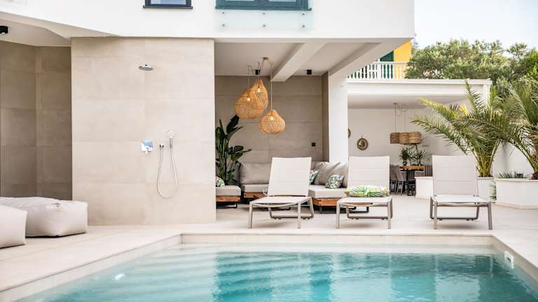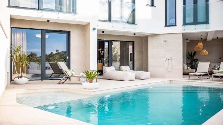Die Villa besteht aus 4 Schlafzimmern und einem Wohnzimmer sowie einer voll ausgestatteten Küche mit Kühlschrank und Kaffeemaschine. Es gibt insgesamt 4 Badezimmer, die mit Dusche und Whirlpool ausgestattet sind. Zur Ausstattung gehören auch Klimaanlage, Schallisolierung, allergikerfreundliche Zimmer und eine Ausstattung zur Herstellung von Babybetten. WLAN ist auch in den Zimmern vorhanden.