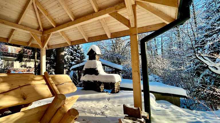 Aktivitäten wie Wandern, Skifahren und Fahrradfahren sind in der Umgebung möglich. Nach einem aktiven Tag können die Gäste im Garten oder in der Gemeinschaftslounge entspannen.