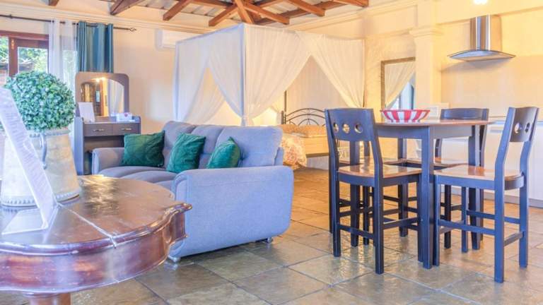 Die Villa besteht aus einem Schlafzimmer, einem Wohnzimmer und einer voll ausgestatteten Küche, die mit einem Kühlschrank und einer Kaffeemaschine ausgestattet ist. Zur Ausstattung gehört ein Badezimmer mit Dusche und Haartrockner. Handtücher und Bettwäsche werden bereitgestellt. In der Unterkunft sind zusätzliche Annehmlichkeiten, wie ein Grillplatz, vorhanden.