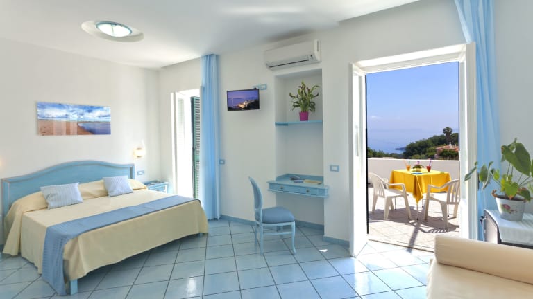 Alle Zimmer mit Balkon oder Terrasse, privates Badezimmer, Dusche, Haartrockner, Strandtuch, Kostenfreie Pflegeprodukte, Waeschestaender, Klimaanlage und Heizung, Safe, kostenlos WLAN, Flachbild-Sat-TV und Telefon. Viele Zimmer bieten eine Panoramaaussicht auf das Meer.