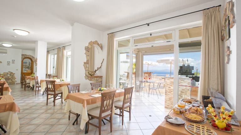 Das Restaurant serviert traditionelle mediterrane Gerichte, die zum großen Teil aus Zutaten aus lokaler Erzeugung zubereitet werden, zum Beispiel vom Weinkeller des Villa D'Orta.