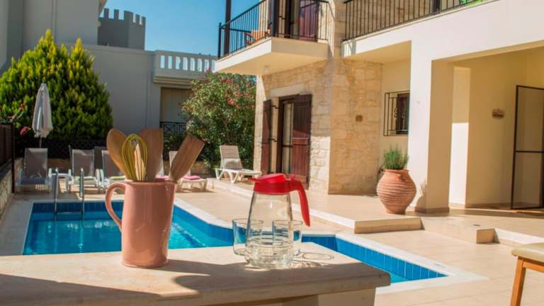 Die klimatisierte Villa verfügt über drei Schlafzimmer, ein gemütliches Wohnzimmer und eine voll ausgestattete Küche mit einem Kühlschrank und einem Wasserkocher. Es gibt zwei Badezimmer mit Dusche und Haartrockner. Handtücher und Bettwäsche werden gestellt, so dass Sie sich um nichts kümmern müssen.