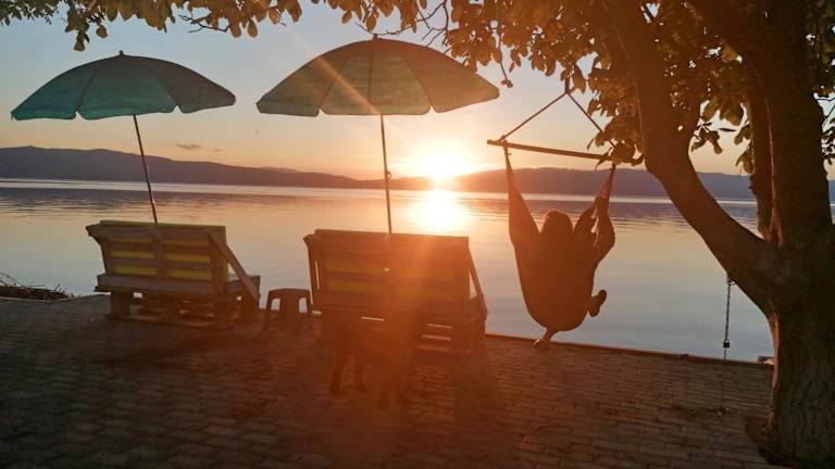 Die Villa Davor in Peštani ist eine ideale Unterkunft für einen erholsamen Urlaub am See. Mit kostenfreien Fahrrädern, einem schönen Garten und einer Gemeinschaftslounge bietet die Villa Davor alles, was Sie für einen komfortablen Aufenthalt benötigen. Genießen Sie den Seeblick von Ihrem eigenen Balkon aus und entspannen Sie in einem gemütlichen Sitzbereich. Das Restaurant vor Ort verwöhnt Sie mit köstlichen Speisen und WLAN sowie Privatparkplätze stehen Ihnen kostenfrei zur Verfügung. Entdecken Sie die Umgebung beim Angeln, Schnorcheln oder Kanufahren und entspannen Sie an einem privaten Strandbereich. Der Flughafen Ohrid ist nur eine kurze Autofahrt entfernt und ein kostenpflichtiger Flughafentransfer wird angeboten.