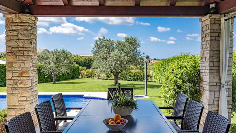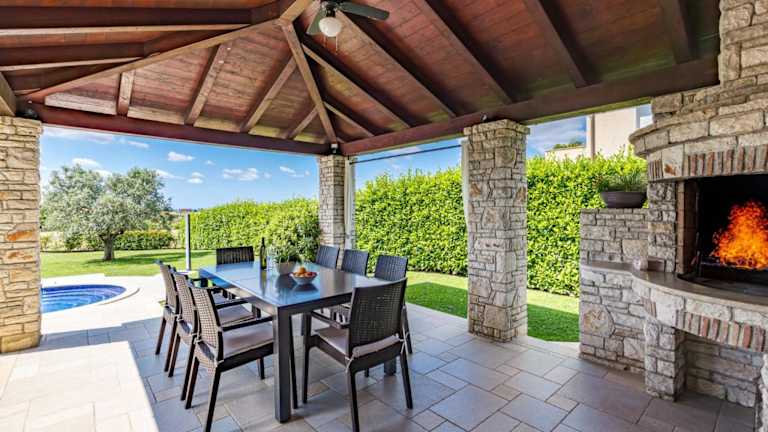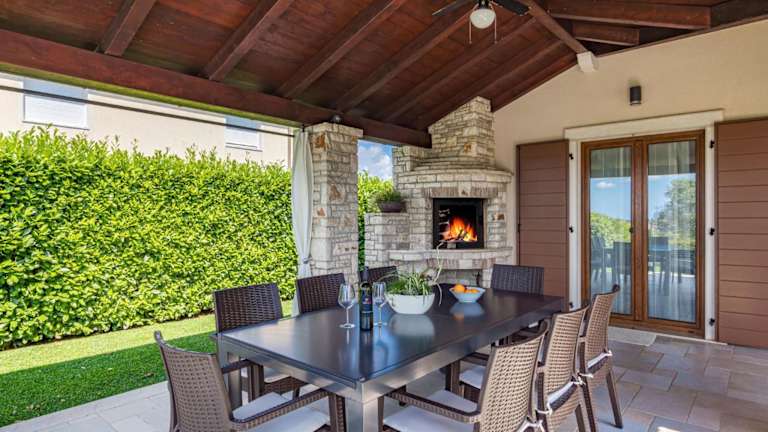 Die Villa verfügt über eine gut ausgestattete Küche mit Kühlschrank, Geschirrspüler und Ofen, die den Gästen die Möglichkeit gibt, selbstständig zu kochen. Grillmöglichkeiten sind ebenfalls vorhanden.