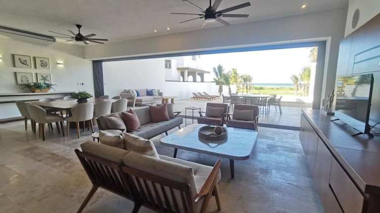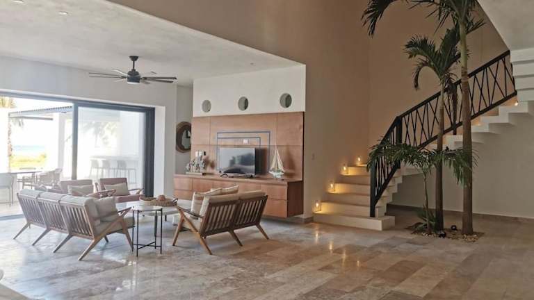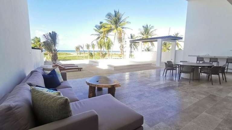 Die Villa de lujo frente al mar de Progreso ist eine klimatisierte Unterkunft mit eigenem Pool und Balkon. Sie bietet Übernachtungsmöglichkeiten in einer komfortablen Umgebung und ist ideal für einen erholsamen Aufenthalt am Meer.