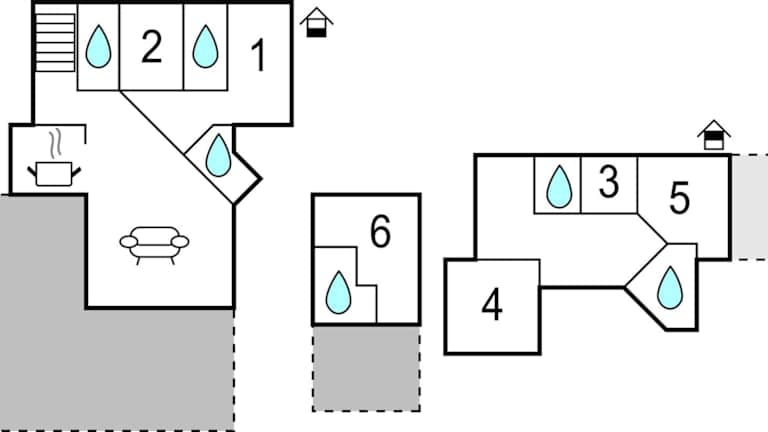 Das Ferienhaus verfügt über 6 Schlafzimmer, ein Wohnzimmer und eine voll ausgestattete Küche, die mit einem Kühlschrank und einer Kaffeemaschine ausgestattet ist. Des Weiteren gibt es 7 Badezimmer mit Dusche.