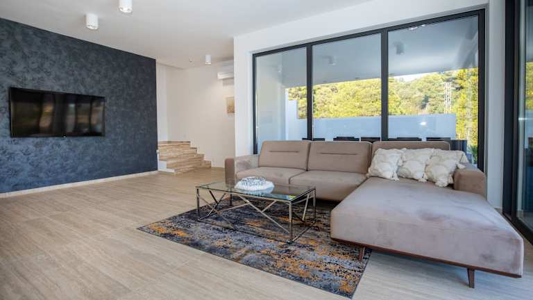 Die Villa bietet insgesamt vier Schlafzimmer und drei Badezimmer. Eine voll ausgestattete Küche ist ebenfalls vorhanden. Zudem gibt es eine Terrasse mit Meerblick, was den Gästen eine angenehme Atmosphäre bietet.