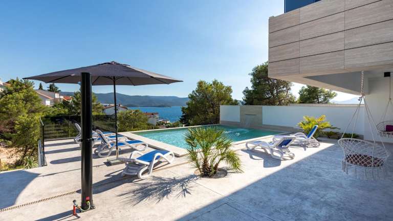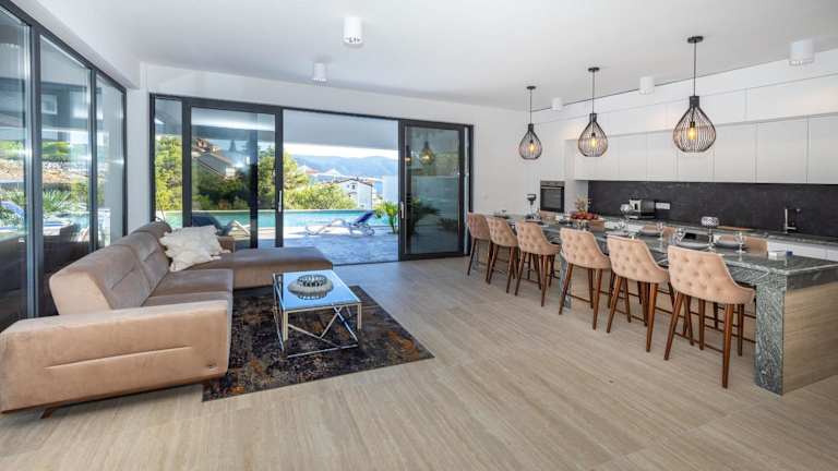 Die Unterkunft Villa Delux View bietet eine klimatisierte Villa mit vier Schlafzimmern und drei Badezimmern. Kostenfreies WLAN sowie ein Privatparkplatz stehen für die Gäste zur Verfügung. Die Ausstattung umfasst Bettwäsche, Handtücher und einen TV mit Satellitenkanälen. Zudem steht den Gästen eine voll ausgestattete Küche und eine Terrasse mit Meerblick zur Verfügung. Die Villa ist mit einem Außenpool ausgestattet.