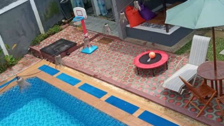 Die Villa Dhanty in Bogor ist der ideale Ort für einen entspannten und komfortablen Aufenthalt. Genießen Sie den Außenpool, die Terrasse und den Blick auf den Garten. Die Villa bietet auch einen eigenen Pool und kostenfreie Parkplätze. Mit einem Balkon, 2 Schlafzimmern, einem Wohnzimmer und einer gut ausgestatteten Küche ist die Villa perfekt für Familien oder Gruppen. Ein Flachbild-TV sorgt für Unterhaltung. Die Villa liegt in der Nähe von Sehenswürdigkeiten wie dem Themenpark Jungleland Adventure und der Universität Indonesien. Der internationale Flughafen Halim Perdanakusuma ist ebenfalls leicht zu erreichen.