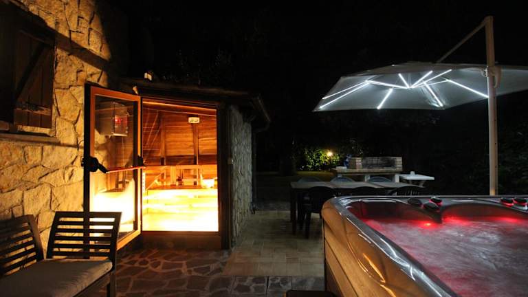 Die Villa verfügt über zwei Schlafzimmer, ein Wohnzimmer und eine voll ausgestattete Küche, die mit einem Kühlschrank und einer Kaffeemaschine ausgestattet ist. Es gibt zwei Badezimmer, die jeweils mit einem Bidet und einer Dusche versehen sind. Handtücher und Bettwäsche werden bereitgestellt.