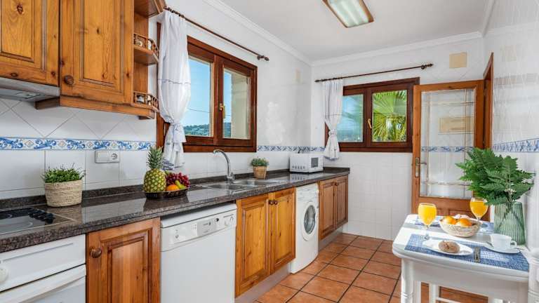 Die Villa verfügt über 4 Schlafzimmer und 3 Badezimmer. Zur Ausstattung gehören Bettwäsche, Handtücher und ein TV mit Satellitenkanälen. Eine voll ausgestattete Küche steht ebenfalls zur Verfügung. Die Terrasse ist ideal für entspannte Stunden mit Blick auf das Meer.