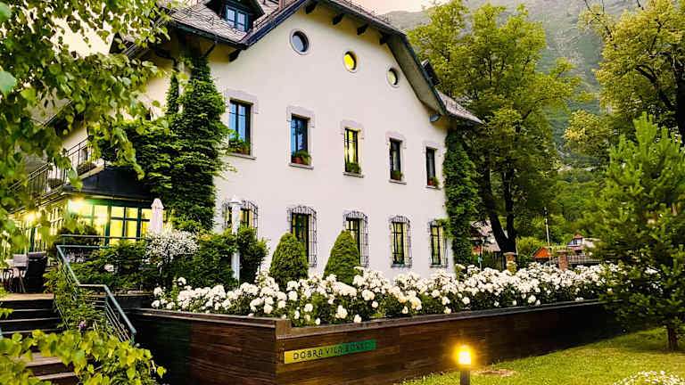 Das Hotel Boutique Hotel Dobra Vila in Bovec heißt Sie in einer historischen Telefonvermittlungszentrale willkommen und bietet Ihnen einzigartige Unterkünfte in grüner Umgebung. Genießen Sie den Charme des historischen Gebäudes, entspannen Sie in der Vinothek und erkunden Sie die Umgebung von Bovec. Die klimatisierten Zimmer sind komfortabel eingerichtet und verfügen über kostenfreies WLAN. Im Restaurant werden regionale Produkte serviert und der Wintergarten oder die Bibliothek bieten die perfekte Kulisse zum Entspannen. Kostenlose Parkplätze stehen zur Verfügung und zusätzliche Dienstleistungen wie Flughafentransfers sind gegen Aufpreis verfügbar.