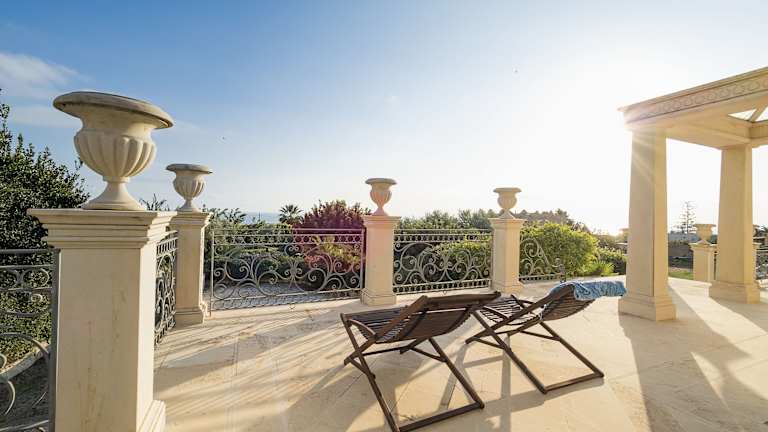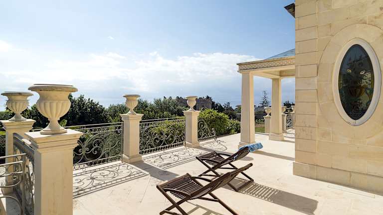 Die Villa bietet vier Schlafzimmer und vier Badezimmer. Die Ausstattung umfasst Bettwäsche, Handtücher, einen TV und eine voll ausgestattete Küche. Zusätzlich gibt es eine Terrasse mit Meerblick und den Zugang zu einem Außenpool.