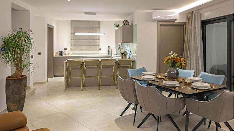 Das Ferienhaus umfasst 4 Schlafzimmer und ist mit Klimaanlage, einem Flachbild-TV sowie einer voll ausgestatteten Küche mit Kühlschrank und Geschirrspüler ausgestattet.