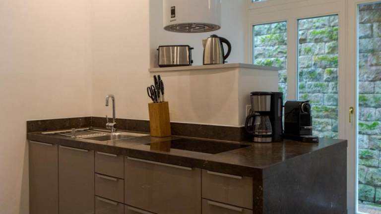 Die Apartments verfügen über eine voll ausgestattete Küche mit modernen Geräten einschließlich Geschirrspüler, Kühlschrank und Kochfeld. Grillmöglichkeiten stehen im Garten zur Verfügung, jedoch gibt es keine Informationen zu weiteren Verpflegungsarten vor Ort.