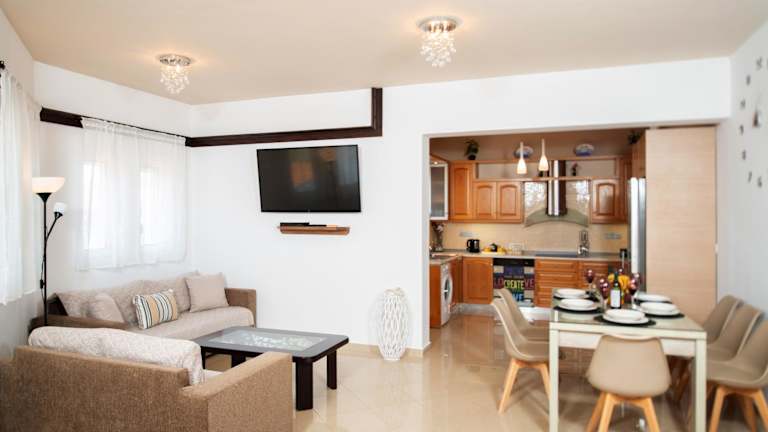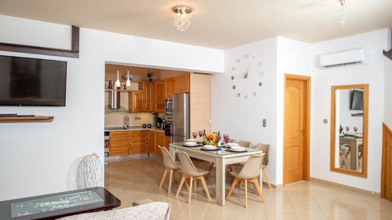 Die Villa Elia bietet geräumige und klimatisierte Zimmer, die mit modernen Annehmlichkeiten ausgestattet sind. Mit 4 Schlafzimmern, einem Wohnzimmer und einer voll ausgestatteten Küche haben Gäste genügend Platz, um sich wie zu Hause zu fühlen. Die Badezimmer sind modern und verfügen über eine Dusche und kostenlose Pflegeprodukte. Unterhaltungsmöglichkeiten wie ein Flachbild-Sat-TV, eine PS3 und ein CD-Player sorgen für zusätzlichen Komfort und Vergnügen während des Aufenthalts.