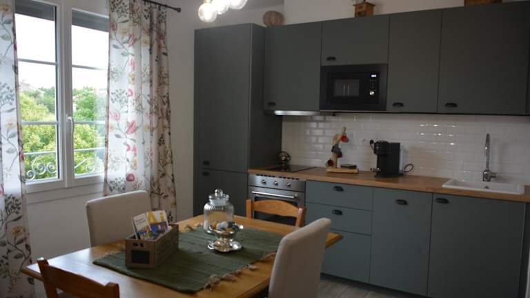 Die Ferienwohnung beinhaltet 1 Schlafzimmer und 1 Badezimmer. Zur Ausstattung gehören Bettwäsche, Handtücher, ein Flachbild-TV, ein Essbereich sowie eine voll ausgestattete Küche. Eine Terrasse mit Blick auf den Garten ist ebenfalls vorhanden.