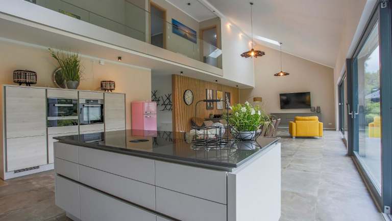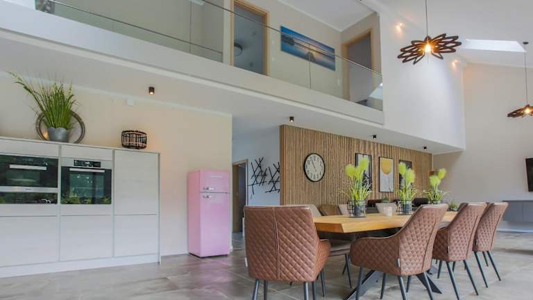 Das Ferienhaus verfügt über 4 Schlafzimmer, eine komplett ausgestattete Küche mit Kühlschrank und Geschirrspüler sowie 3 Badezimmer, die jeweils mit einem Whirlpool, einem Haartrockner und einer Waschmaschine ausgestattet sind. Handtücher und Bettwäsche können gegen Aufpreis bereitgestellt werden.