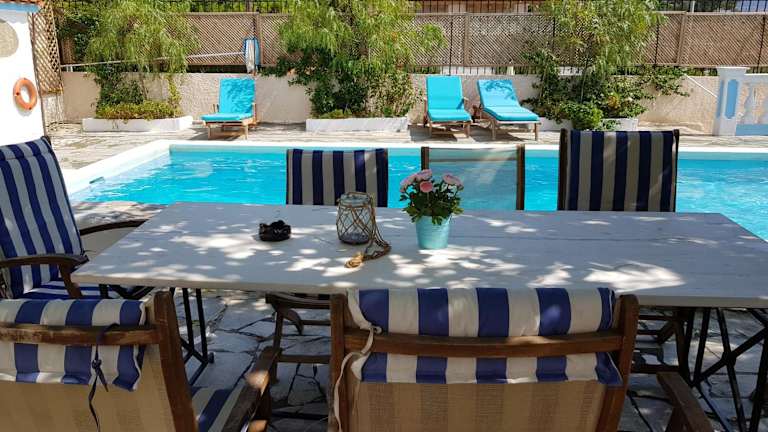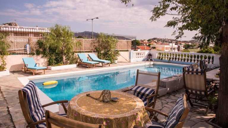 Die Villa Emily in Lagonissi ist eine idyllische Unterkunft mit einem eigenen Pool und einem Garten, ideal für einen entspannten Aufenthalt. Mit 4 Schlafzimmern, 2 Bädern und einer voll ausgestatteten Küche bietet die Villa viel Platz und Komfort. Genießen Sie den saisonalen Außenpool und die Grillmöglichkeiten. Die Villa liegt in der Nähe von schönen Stränden und bietet einen herrlichen Blick auf die Berge. Ein Kinderspielplatz sorgt für Unterhaltung. Erkunden Sie den Yachthafen von Glyfada und die Metropolitan Expo in der Nähe. Der Flughafen Athen ist leicht erreichbar.