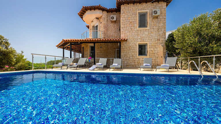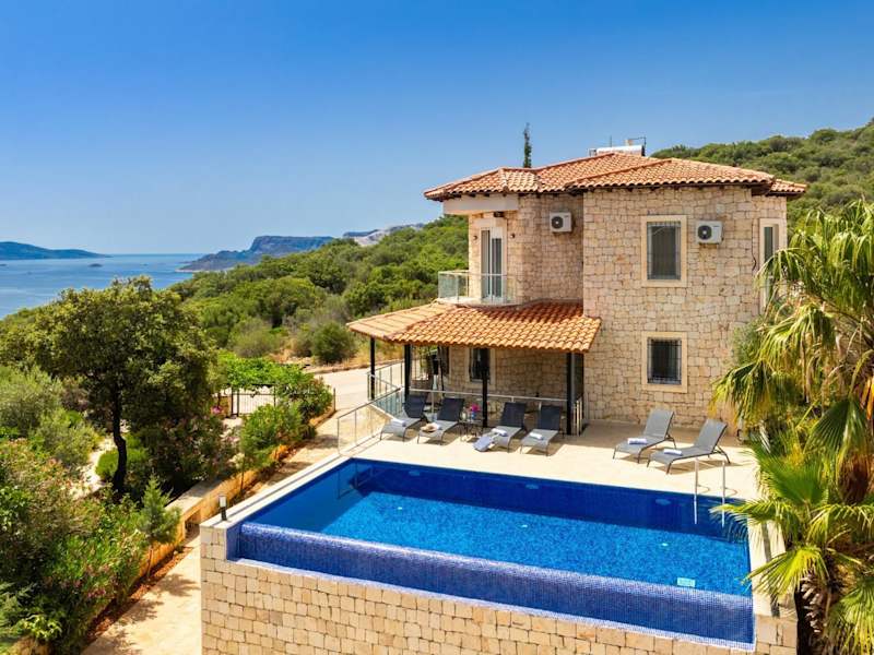 Die Villa Erdem bietet klimatisierte Übernachtungsmöglichkeiten mit einem eigenen Pool und Meerblick. Die Unterkunft umfasst eine Veranda/Patio und einen Außenpool, ideal für entspannende Stunden im Freien.