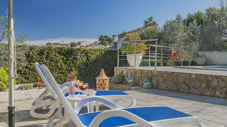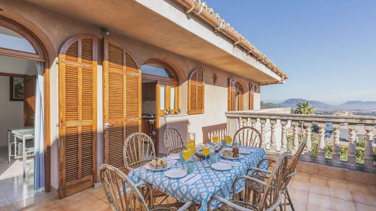 Die Villa Es Puig bietet Übernachtungsmöglichkeiten mit Gartenblick sowie einem Balkon und einer Kaffeemaschine. Die Unterkunft umfasst ein Ferienhaus mit einem Pool, einem Garten und kostenlosem WLAN. Das Ferienhaus verfügt zudem über eine Terrasse und bietet Stadtblick.