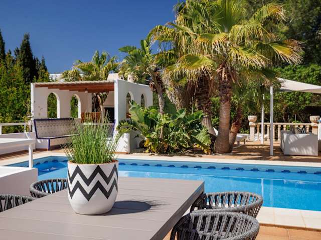 VILLA ES VEDRÁ by Migjorn Ibiza Suites & Spa bietet Übernachtungsmöglichkeiten in einer klimatisierten Villa, die mit einem Außenpool, einem Garten, einer Terrasse und kostenlosem WLAN ausgestattet ist. Zur Verfügung steht ein kostenloser Privatparkplatz.