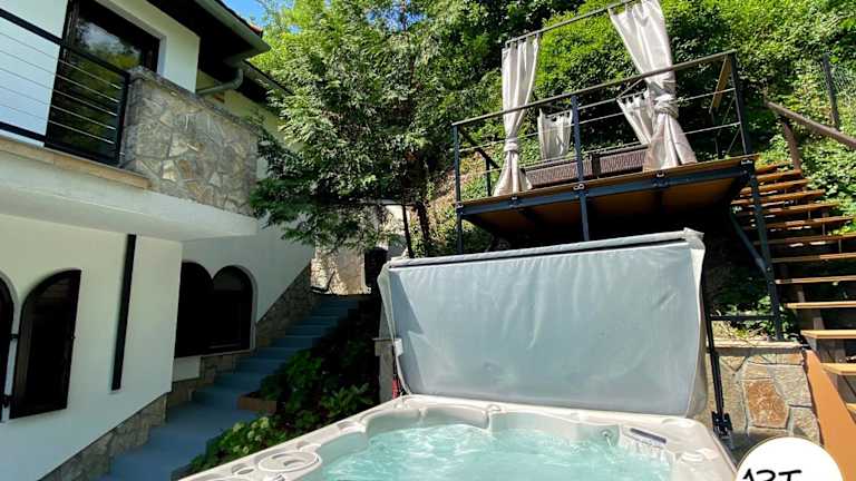 Die ARTtrend Luxury Villa bietet eine exklusive Unterkunft mit einem beeindruckenden Poolblick und geräumigen Übernachtungsmöglichkeiten. Die Villa umfasst 4 Schlafzimmer, ein Wohnzimmer sowie eine voll ausgestattete Küche und zwei Badezimmer. Zu den Annehmlichkeiten gehören ein Klimaanlage, kostenloses WLAN und ein Privatparkplatz. Zu den weiteren Einrichtungen zählen ein eigener Pool, ein Garten und ein Grillbereich. Entspannung finden die Gäste in der hauseigenen Sauna, dem Whirlpool und dem Spa-Center. Die Villa ist Nichtraucher und wird von einem privaten Gastgeber verwaltet.