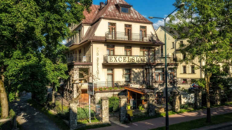 Die Willa Excelsior ist eine gemütliche Unterkunft im Herzen von Zakopane. Das elegante Gebäude wurde nach modernen Standards renoviert, wobei die charmante Atmosphäre der Vorkriegszeit erhalten geblieben ist. Die Zimmer sind funktional und komfortabel eingerichtet und bieten kostenfreies WLAN sowie Sat-TV. Das Hotel befindet sich in einer ruhigen, grünen Gegend und ist von einem schönen Garten umgeben. Die Lage ist ideal, da Sie nur einen kurzen Spaziergang von der lebhaften Krupowki Straße entfernt sind.