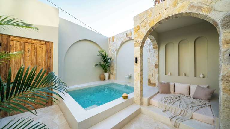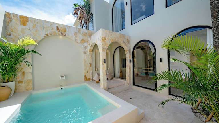 Die Villa bietet ein Schlafzimmer und ein Badezimmer, ausgestattet mit Bettwäsche und Handtüchern. Zur weiteren Ausstattung gehören ein Flachbild-TV, ein Essbereich und eine voll ausgestattete Küche. Ein Terrasse mit Blick auf den Pool rundet das Angebot ab.