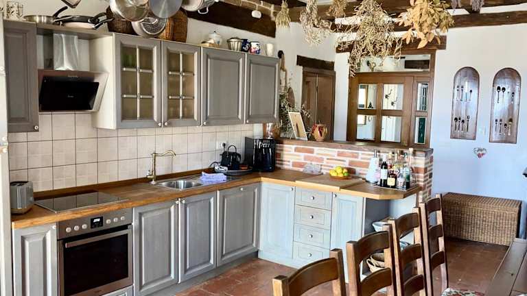 Die Villa ist mit einer voll ausgestatteten Küche ausgestattet, die unter anderem einen Kühlschrank und einen Geschirrspüler umfasst. Zudem steht den Gästen ein Grill zur Verfügung, was die zubereitung von Mahlzeiten und das gemeinsame Essen im Freien ermöglicht.
