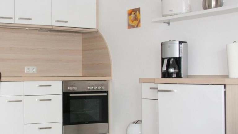 Die Ferienwohnung verfügt über eine Küchenzeile mit einem Kühlschrank, einem Ofen und einer Kaffeemaschine, sodass eine Selbstverpflegung möglich ist. Für zusätzlichen Komfort können Handtücher und Bettwäsche gegen Aufpreis bereitgestellt werden.