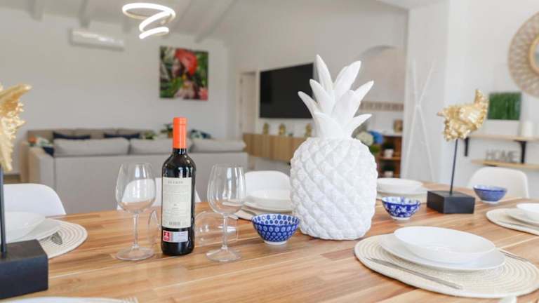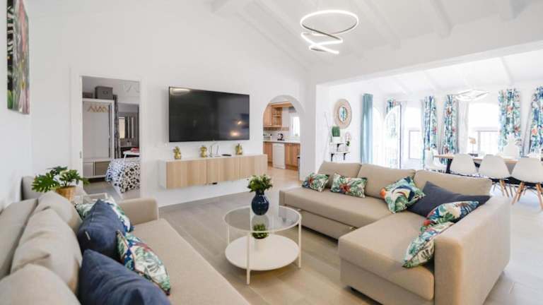 Die Villa bietet insgesamt 4 Schlafzimmer und ist mit einer modernen Küche ausgestattet, die über Kühlschrank und Geschirrspüler verfügt. Zudem gibt es 4 Badezimmer mit Dusche, Haartrockner und Waschmaschine. Ein TV ist ebenfalls vorhanden. WLAN ist in allen Bereichen der Unterkunft verfügbar.