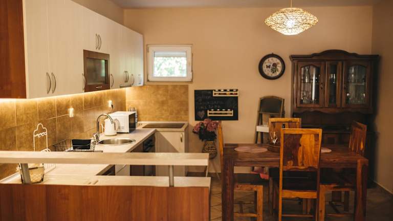 Die Villa Gana bietet Selbstversorgern die Möglichkeit, ihre eigenen Mahlzeiten zuzubereiten. Die voll ausgestattete Küche verfügt über einen Kühlschrank und einen Wasserkocher, so dass Sie Ihre Lieblingsspeisen und Getränke nach Belieben zubereiten können. Grillmöglichkeiten im Freien stehen ebenfalls zur Verfügung, so dass Sie ein gemütliches Barbecue im Garten genießen können.