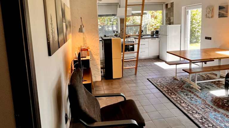Die Villa umfasst zwei Schlafzimmer und ein Wohnzimmer, das mit einem Flachbild-TV ausgestattet ist. Eine gut ausgestattete Küche mit Kühlschrank und Geschirrspüler ist vorhanden, ebenso wie ein Badezimmer mit Dusche. Handtücher und Bettwäsche werden bereitgestellt. Die Unterkunft bietet zudem eine Terrasse mit Blick auf den Garten.