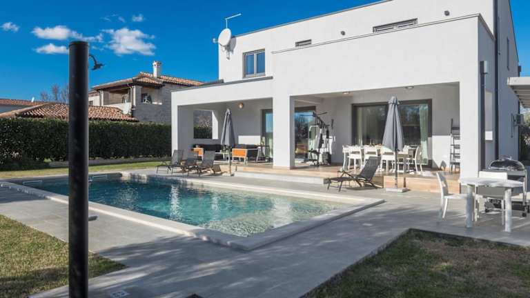 Die Villa Gina befindet sich in Nova Vas, in der Region Istrien, und ist etwa 21 km vom Aquapark Istralandia und 43 km von der Kirche der heiligen Euphemia in Rovinj entfernt. Der nächstgelegene Flughafen ist der Flughafen Pula, 56 km von der Unterkunft entfernt.