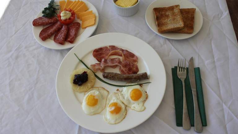 Beginnen Sie den Tag mit einem köstlichen kontinentalen Frühstück, das Ihnen in der Unterkunft serviert wird.